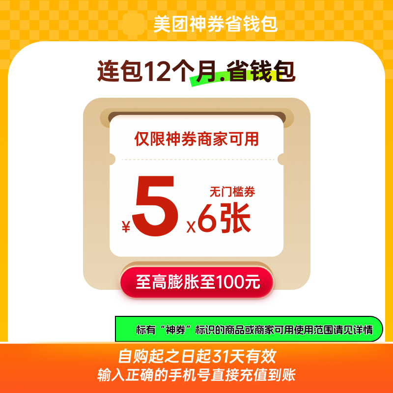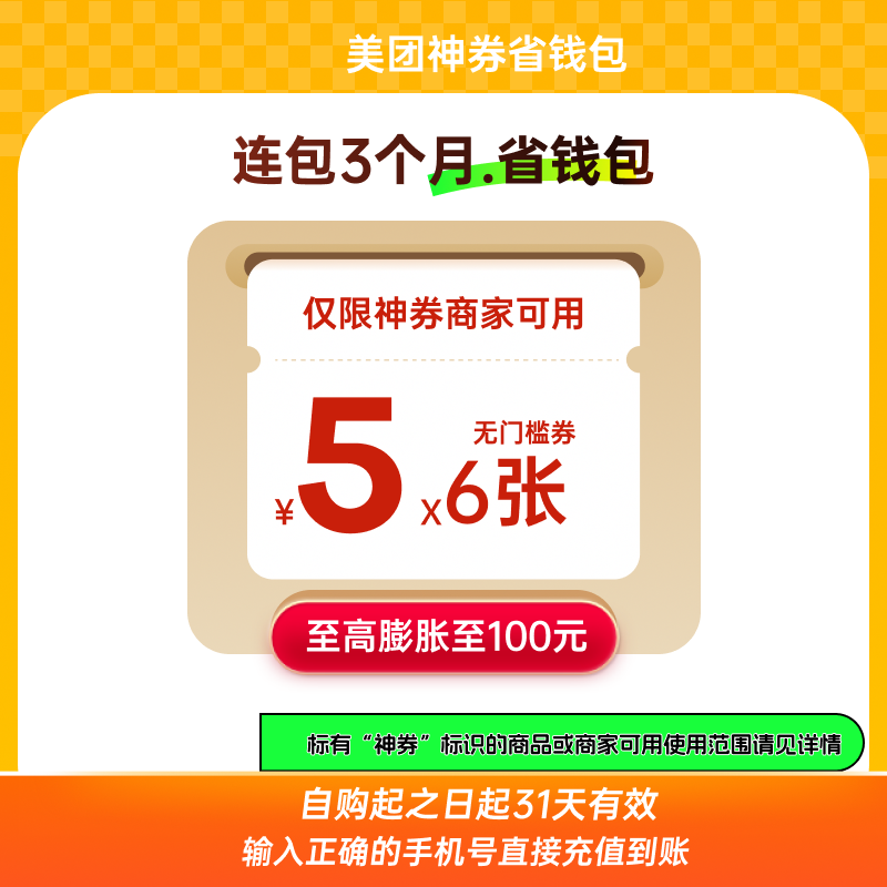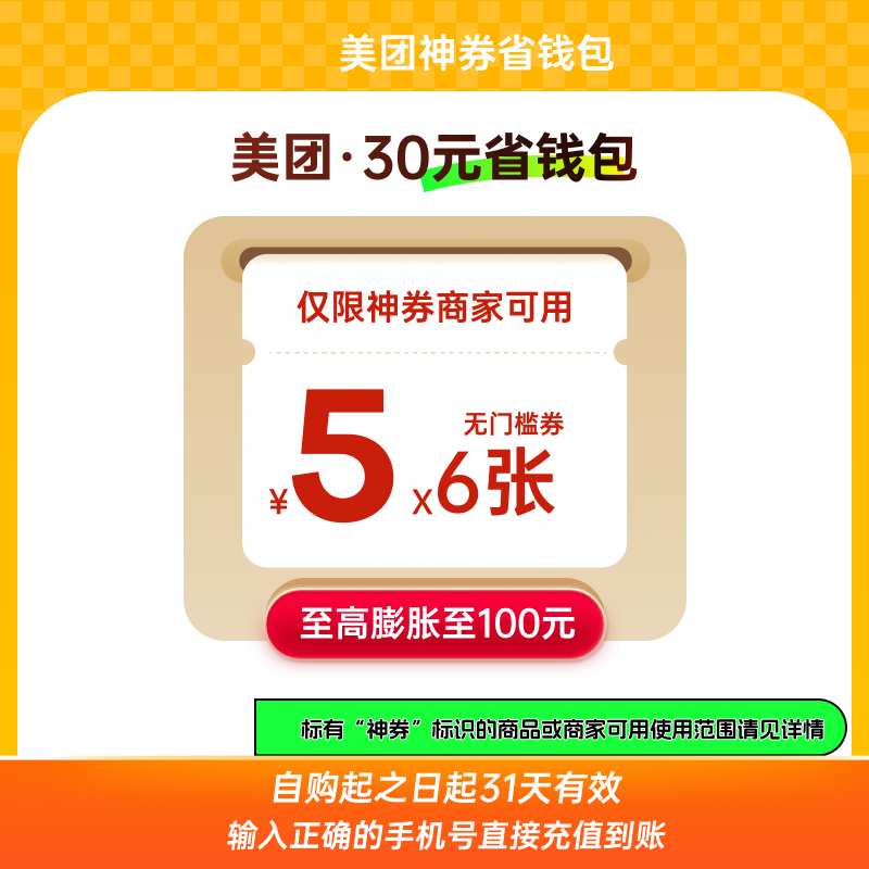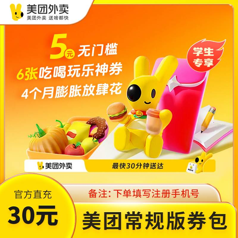 【直充秒到】美团外卖红包30元无门槛通用红包丨1天5次