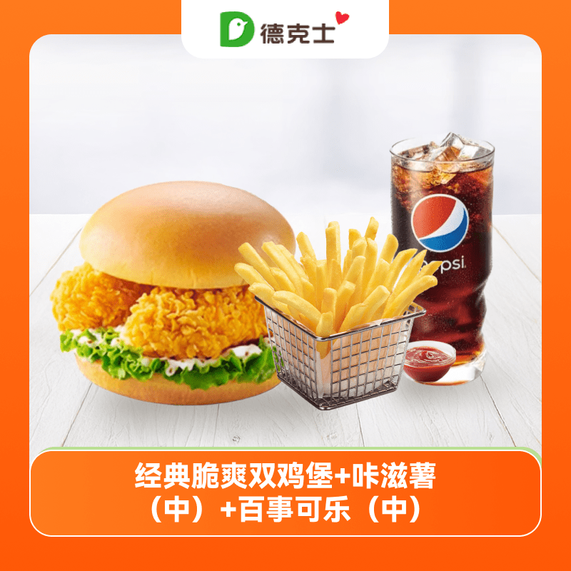 【账号直充】德克士单品兑换券『经典脆爽双鸡堡+咔滋薯霸(中)+百事可乐(中)』
