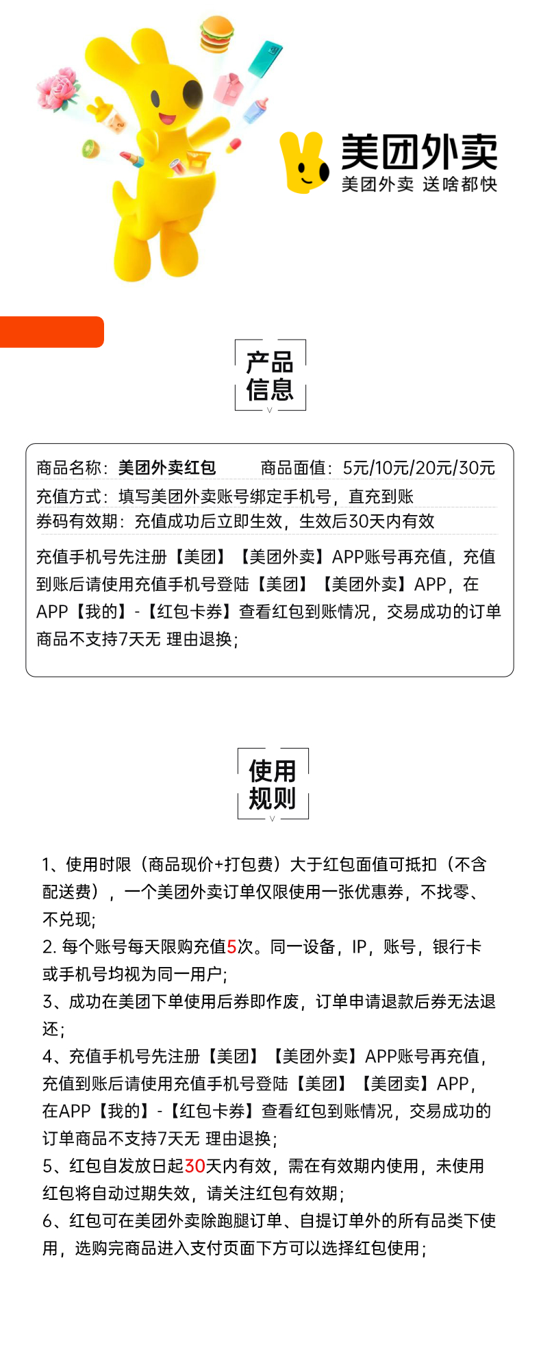 【官方直充】美团外卖红包5元券