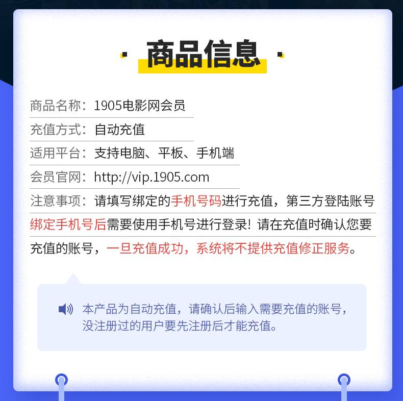 【账号直充】1905电影网VIP会员3个月